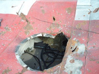 The evidence showed that the alleged rocked hit was actually where a ventilator had been torn off but the vehicle could not have been hit by a missile.