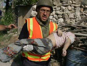 He appears throughout the footage analysed by EU Referendum, and appears to be a professional carrier of dead children and stage manager of photo-ops