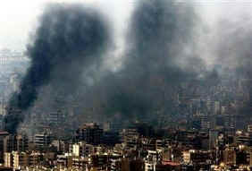 The Photoshop cloning tool has been used to enhance the smoke in this picture, as pointed out by L.G.F. and Honest Reporting (in their excellent Quiz)
