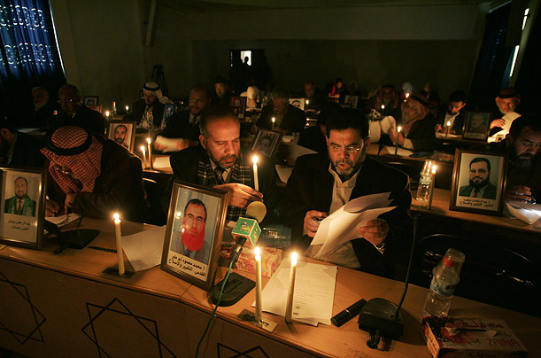 "Blackout: The Israeli embargo has left the Gaza Strip without electricity. The Palestinian Parliament was forced to meet by candlelight on Tuesday night."