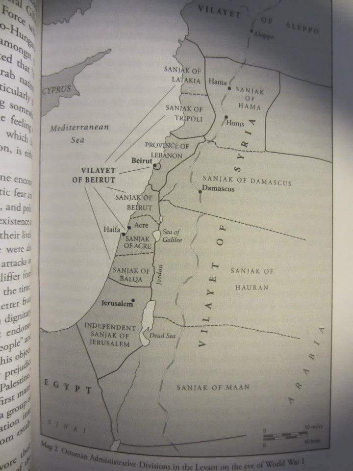 Notice how the area is divided up unto SANJAKs with no mention of Palestine and no correlation to later British Mandate boundaries.