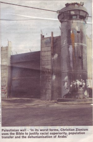 Palestinian wall – “In its worst forms, Christian Zionism uses the Bible to justify racial superiority, population transfer and the dehumanisation of Arabs”