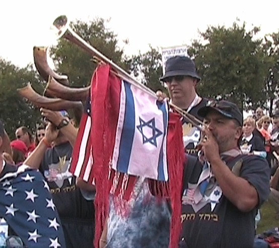 In this clip, recorded at the Feast of Tabernacles Jerusalem March in October 2005, the silver trumpet can be heard along with a Shofar and one man blowing two shofarot at the same time.