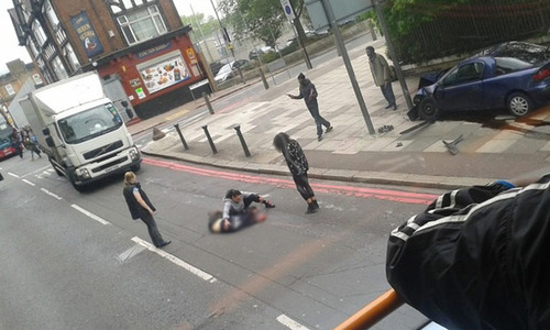 London - 22nd May 2013 - A passer by attempts to assist Fusillier Lee Rigby - murdered by two Muslim Jihadis